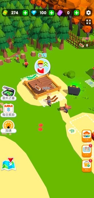 1、解鎖更多木材卡車,完成更多日常任務,組建龐大的運輸隊伍;
