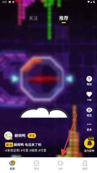 1、啟動聯(lián)通視頻彩鈴APP,點擊導(dǎo)航欄中DIY的圖標(biāo)。