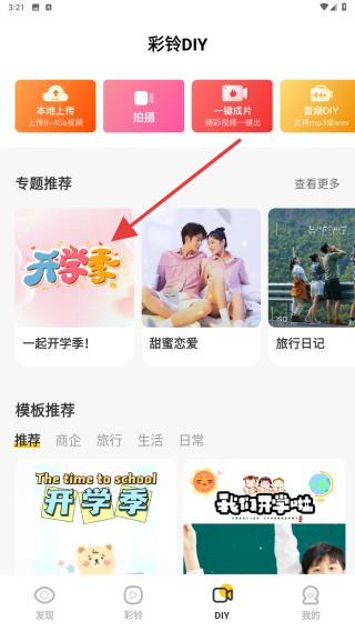 2、進入彩鈴DIY的界面內(nèi),在專題推薦下,選擇并點擊你要剪輯的專題內(nèi)容。