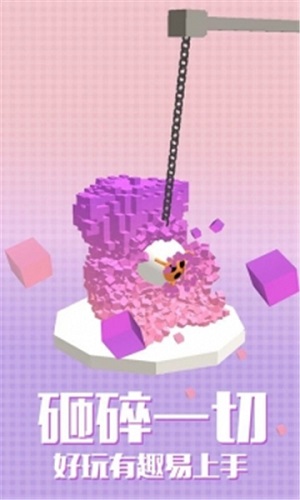 1、玩家使用手中的大錘自由揮動,嘗試擊倒游戲中的建筑物;
