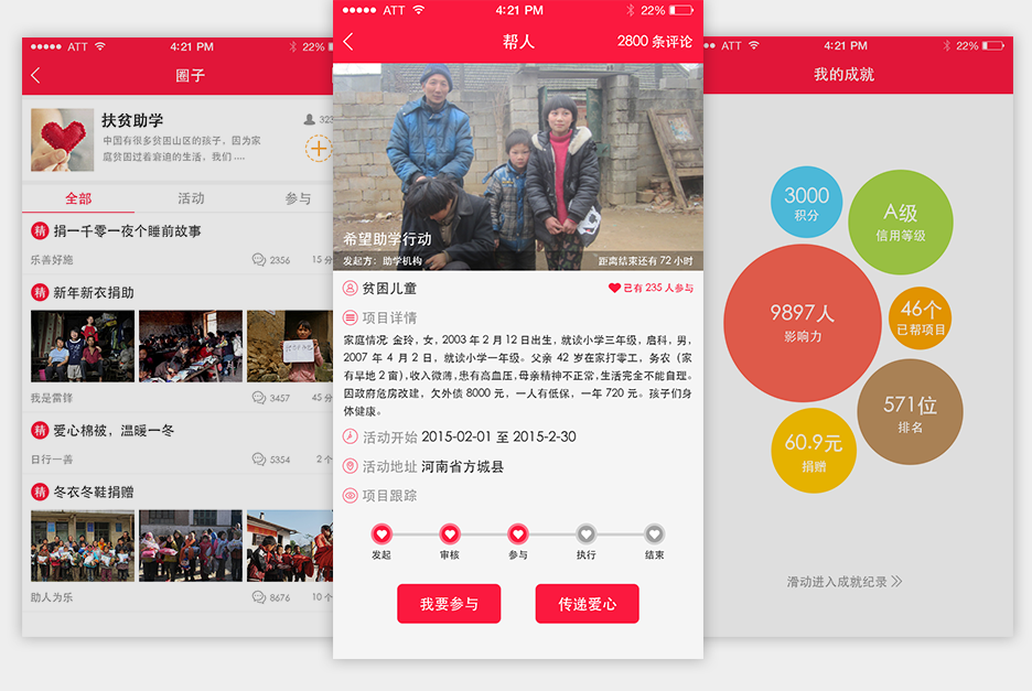 億人幫蘋果版是一款互幫互助的手機(jī)公益平臺,自己有難題的時候可以向別人尋求幫助,發(fā)你所需,總有一個或一群熱心人幫到你。也同時為需要幫助的朋友、孩子貢獻(xiàn)自己的一份力量,杜絕郭美美事件的發(fā)生,讓自己每一分錢、每一件物品都實打?qū)嵉馁浰偷叫枰娜耸种?,是一個真正的、可靠的、快捷的公益平臺。