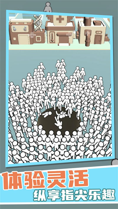 人滿為患游戲是一款有趣的吞噬游戲,玩家需要控制黑洞去到人群密集的地方進(jìn)行吞噬,游戲采用清新簡約的設(shè)計(jì)風(fēng)格,游戲玩法也十分簡單,玩家可以輕松上手。