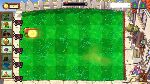 1、開啟花園守護戰(zhàn)之后,玩家首先需要進行向日葵的種植,點擊向日葵種植在合適的位置;