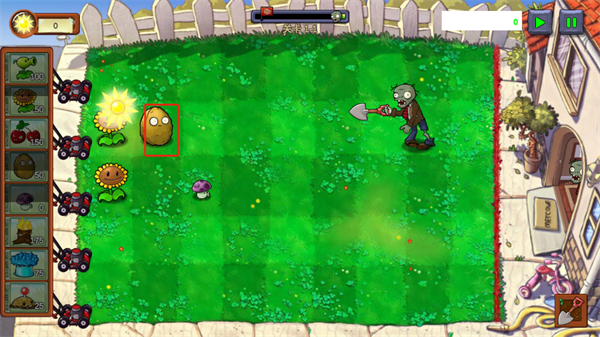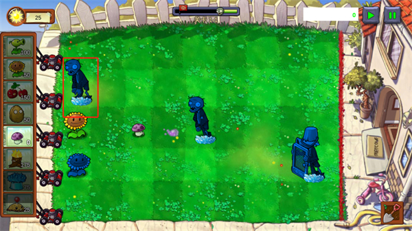 3、玩家需要觀察僵尸出現(xiàn)的位置,并在僵尸出現(xiàn)的道路之上種植一個抵御型的植物,以抵御僵尸進攻向日葵;