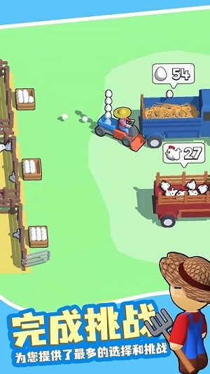 卡通風(fēng)格的游戲界面,讓玩家享受輕松的視覺體驗,在游戲中,你將成為養(yǎng)雞場的經(jīng)營者,飼養(yǎng)更多可愛的小雞,可以飼養(yǎng)各種品種的雞,收獲雞蛋,不斷擴大產(chǎn)業(yè)鏈,這里有非常豐富的模式,玩家也可以在這里不斷的打開自己的心結(jié)是,玩起來也是很給力的。