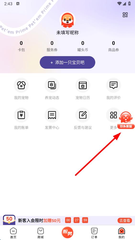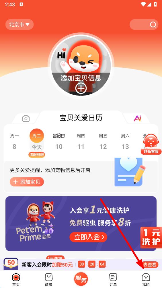 1、打開寵物家app,點(diǎn)擊底部導(dǎo)航欄最右側(cè)我的選項(xiàng),進(jìn)入個(gè)人頁(yè)面。