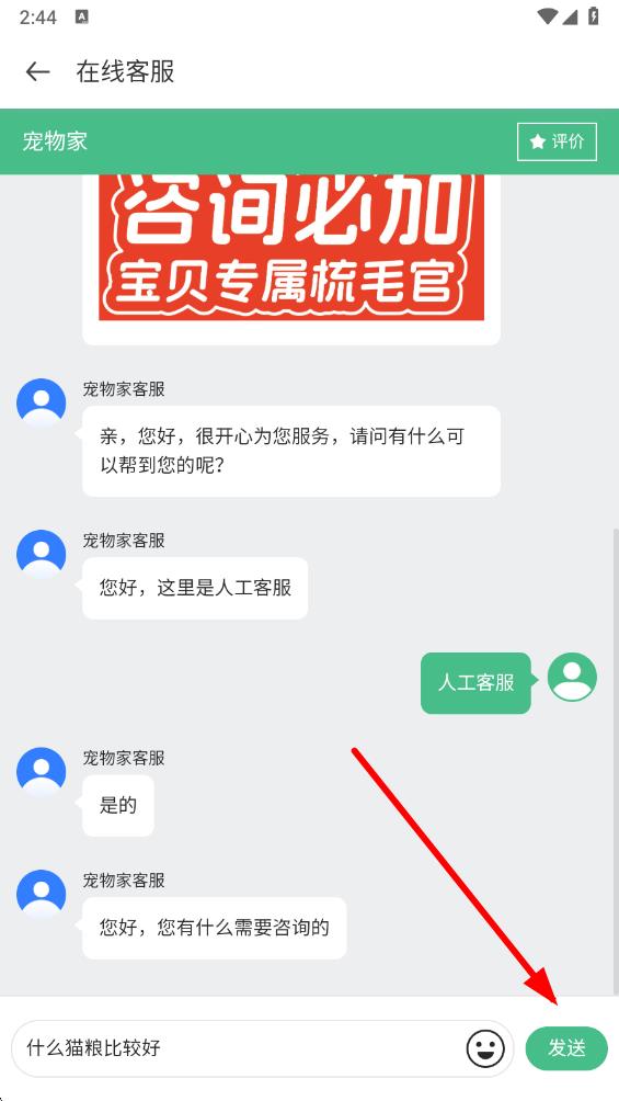 4、在輸入框詳細(xì)描述問題后,點(diǎn)擊發(fā)送按鈕,等待人工客服回復(fù)解決問題。