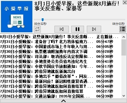 小愛(ài)早晚報(bào)軟件可以使用語(yǔ)音進(jìn)行播放,對(duì)于不同的新聞,都會(huì)有不同的時(shí)間,并且會(huì)有標(biāo)題顯示,讓用戶大概的先了解新聞的內(nèi)容,讓后也可以跳過(guò)新聞,如果不想聽該條新聞,直接跳過(guò)就可以直接播放下一條新聞,非常方便。