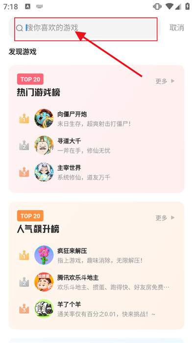 2、隨后,在搜索框內(nèi)輸入關(guān)鍵詞進(jìn)行查找,并且這里還給用戶收集了比較熱門的游戲;