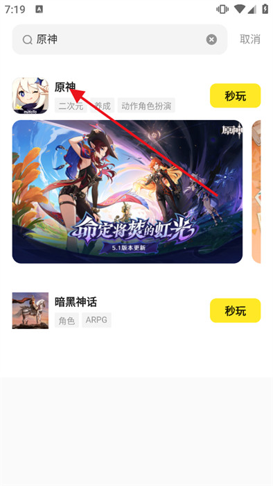 3、接著,短時(shí)間內(nèi)即可看到搜索出來的游戲,點(diǎn)擊游戲頭像就能進(jìn)入詳情頁;