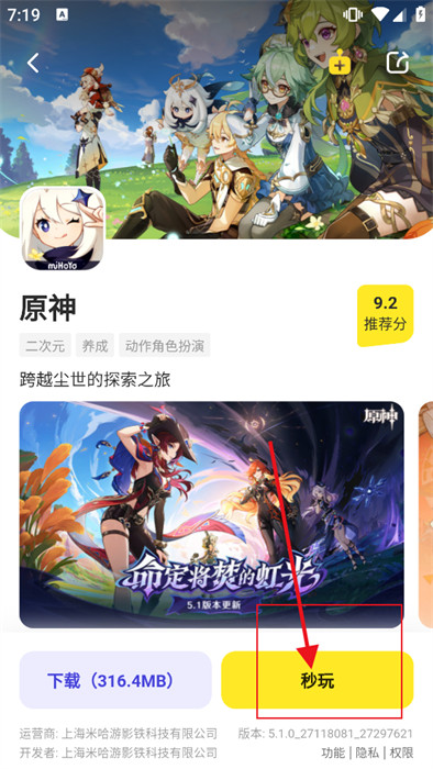 4、緊接著,點(diǎn)擊最下方黃色【秒玩】按鈕,輕松就能開啟一局新的游戲,且游戲數(shù)據(jù)能存儲(chǔ)下來;