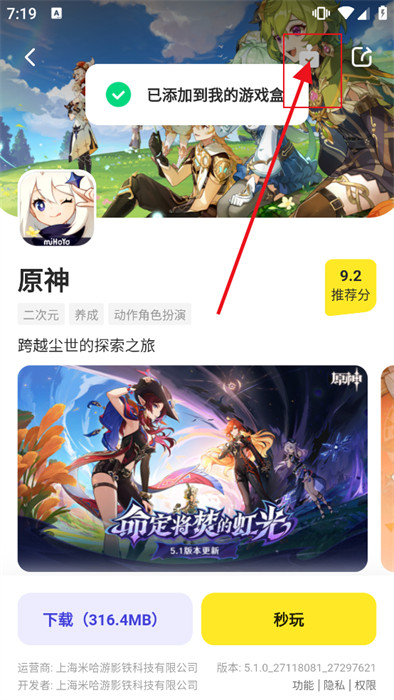 5、如果你覺得這款游戲非常有趣,找到右上角的黃色按鈕,點(diǎn)擊即可添加到游戲盒,這樣后續(xù)想玩可直接點(diǎn)擊進(jìn)入。