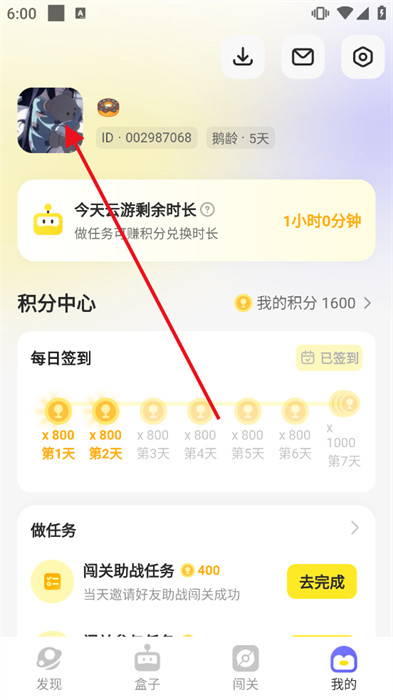2、隨后,點(diǎn)擊最上方的賬號(hào)頭像,就會(huì)繼續(xù)跳轉(zhuǎn)頁面,如下圖所示;