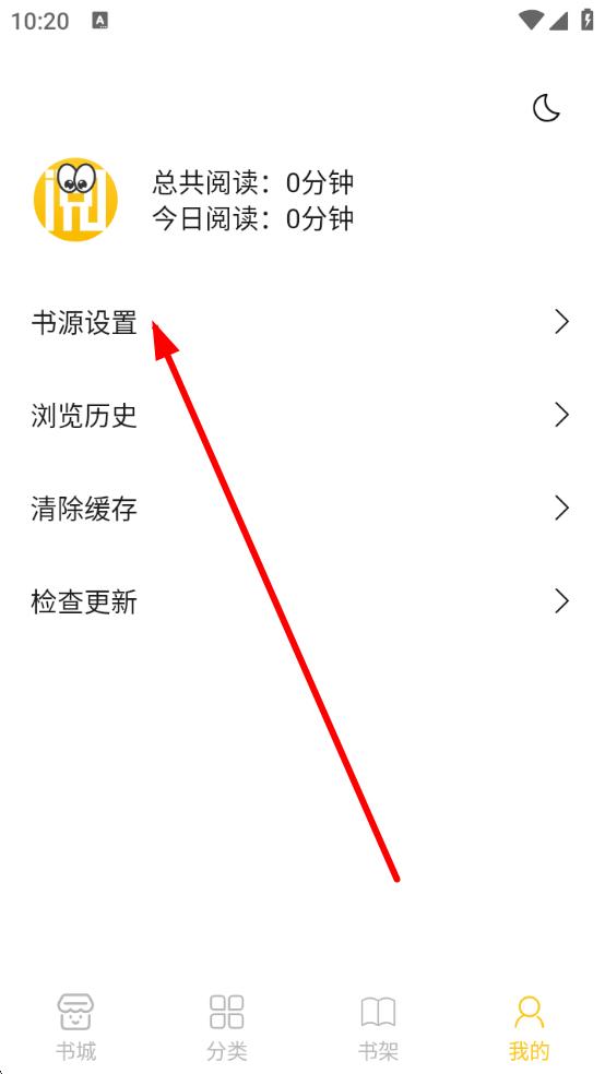 2、在個(gè)人頁面中點(diǎn)擊書源設(shè)置選項(xiàng)。