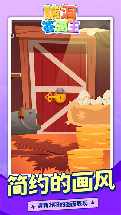 腦洞答題王游戲是一款趣味解謎類的休閑游戲,在這里,玩家將會置身于一個神秘的房間中,這個房間的門都是鎖上的,玩家需要想出各種辦法打開門逃出去,然而這里有整整一百道門,并且越往后難度越大,你能成功打開所有的門逃出去嗎。