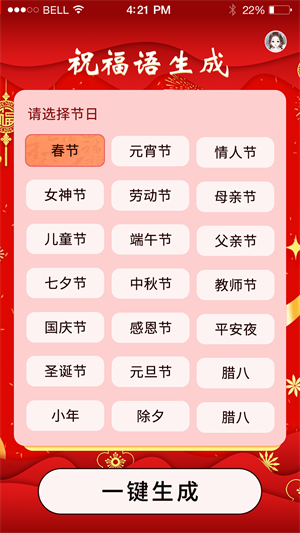 - 你可以根據(jù)提供的節(jié)日圖片和祝福的話,用戶可以根據(jù)自己的想法進行不同的設(shè)置;