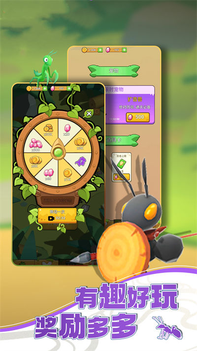 1、多樣的關(guān)卡任務(wù),游戲中有很多不同的任務(wù),玩家可以幫助螞蟻部落壯大;