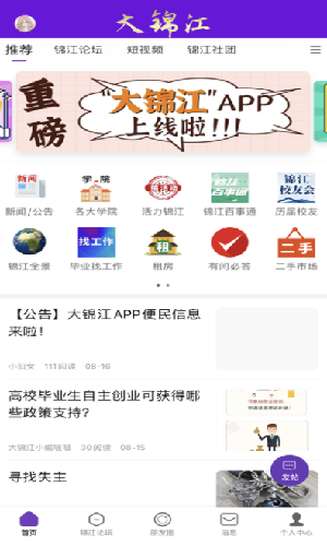 大錦江有很多校園服務(wù)可以滿足你的需求,你也可以得到很多校園信息,校園學(xué)生綜合服務(wù)平臺是大量服務(wù)的集合,能夠滿足人們的需求,隨時可以通過平臺輕松與校園互動,來這里開始關(guān)注校園信息全面的信息。