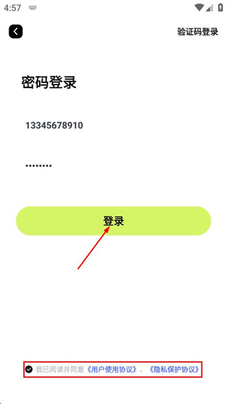 4、勾選同意用戶使用協(xié)議及隱私保護協(xié)議的選項,點擊登錄按鈕完成賬號登錄。
