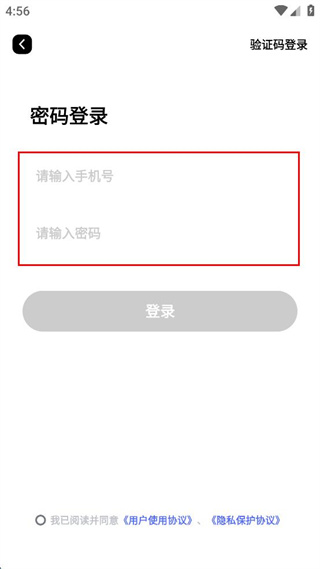 3、在密碼登錄頁面的對應輸入框中,分別填寫手機號碼和密碼信息。