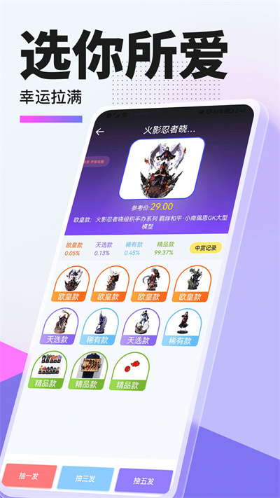 該應(yīng)用如今給予了大家更多的盲盒抽取的樂趣,給予大家購買是哪個(gè)從開始就有期待,針對現(xiàn)在的是購買上如今也是非常的方便,購買自己的產(chǎn)品就能擁有更多的盲盒系列。