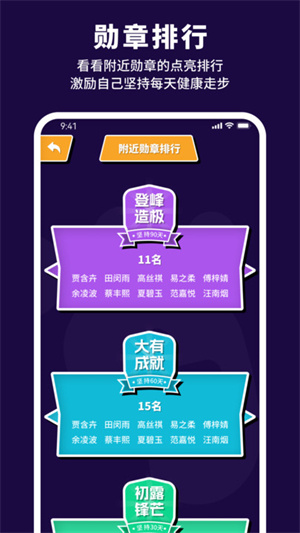 - 用戶可以自由設(shè)置每天步行的步數(shù),可以解鎖更多的獎(jiǎng)牌激勵(lì)自己去做健康運(yùn)動(dòng);