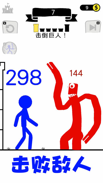 3、保護城堡,游戲玩家需要擊敗敵人,保護自己的城堡不被侵襲,并收集寶物,在游戲中成為火柴人英雄。