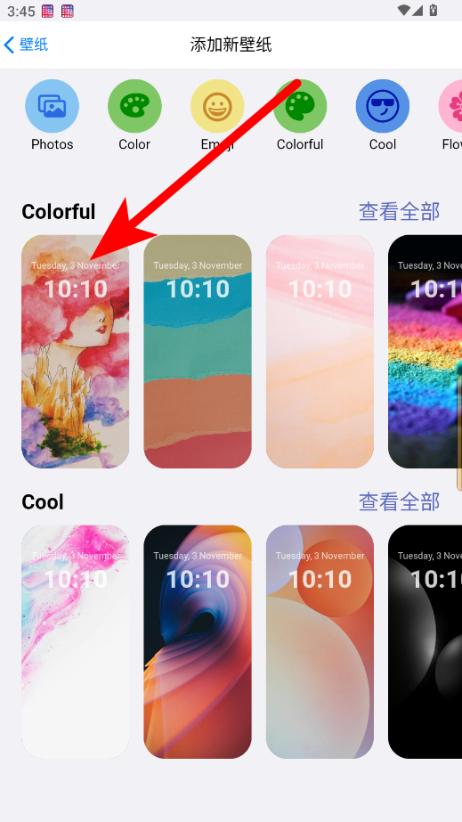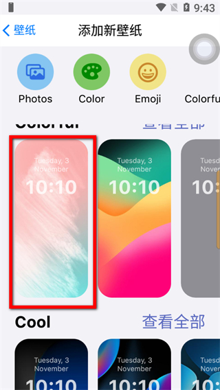 3、在添加壁紙界面,選擇想要的壁紙樣式,進入壁紙預(yù)覽界面。