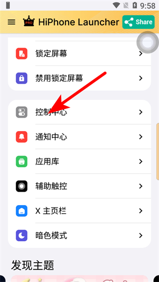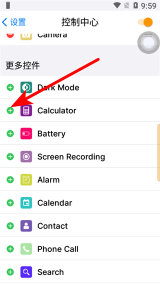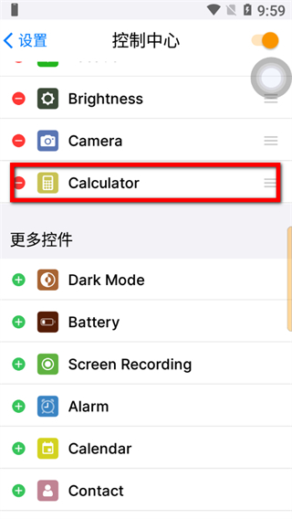 4、添加后應(yīng)用會出現(xiàn)在控制中心列表,即可完成蘋果主題控制中心應(yīng)用添加。