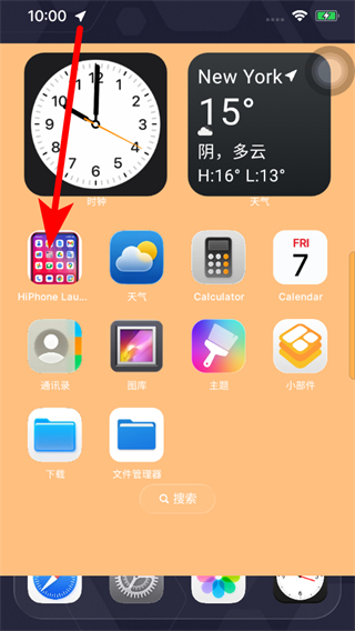 1、在蘋果主題桌面,點擊HiPhone Launcher應(yīng)用,進入設(shè)置界面。