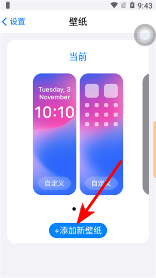 3、在壁紙設(shè)置界面,點擊添加新壁紙按鈕。
