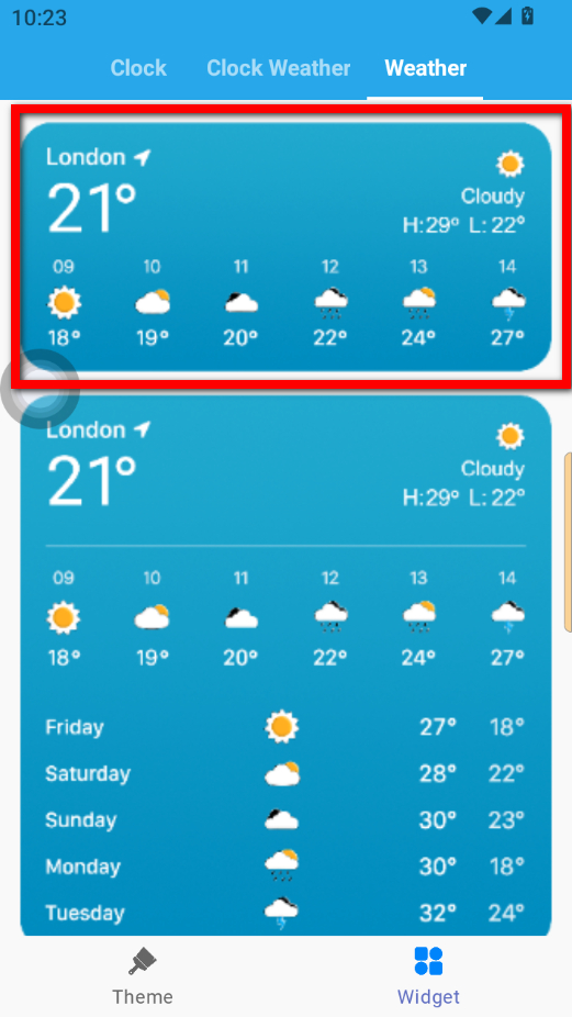 2、在小組件選擇界面,點擊頂部Weather選項卡,切換到天氣小組件類別。