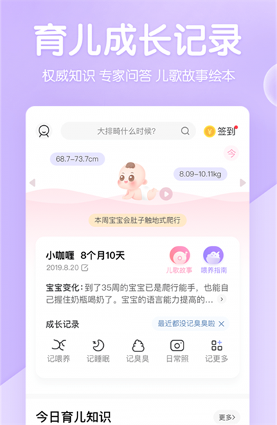 2、育兒成長記錄,這里提供的都是權(quán)威的知識(shí),還有更多的專家在線解答,海量的兒歌故事繪本提供給大家;