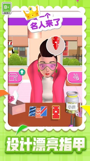 是一款非常有趣的美甲制作游戲,玩家可以為其他美少女做美甲,嘗試如何做出美麗動人的指甲,發(fā)揮自己的想象力和創(chuàng)造力,設計出漂亮的指甲,樂趣無窮。