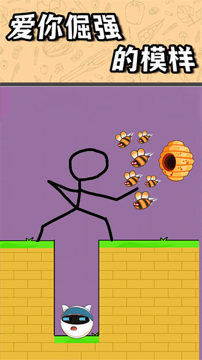 1、保證兔克狗的安全,每一關(guān)卡都會(huì)有蜜蜂,玩家需要畫出合適的線條,將兔克狗和蜜蜂隔開,不讓蜜蜂叮到它;
