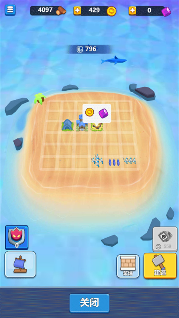 -收集大量的資源可以擴(kuò)大自己的島嶼,建設(shè)各種防御設(shè)施。