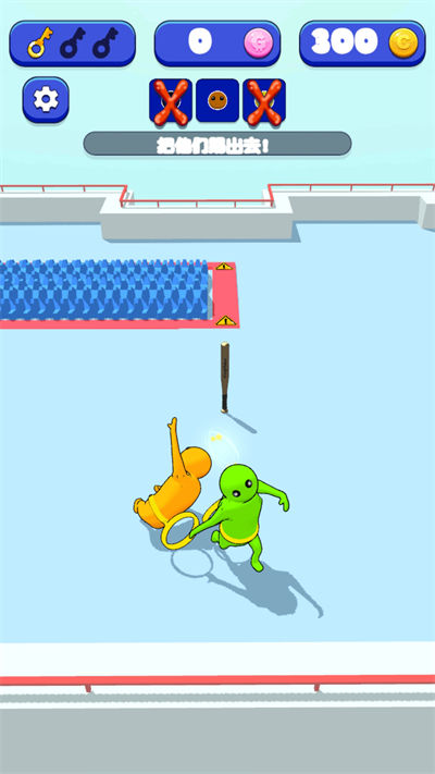 1、卡通風(fēng)格的游戲畫面,游戲中的場(chǎng)景簡約清新,橡皮人角色非常的魔性搞笑;