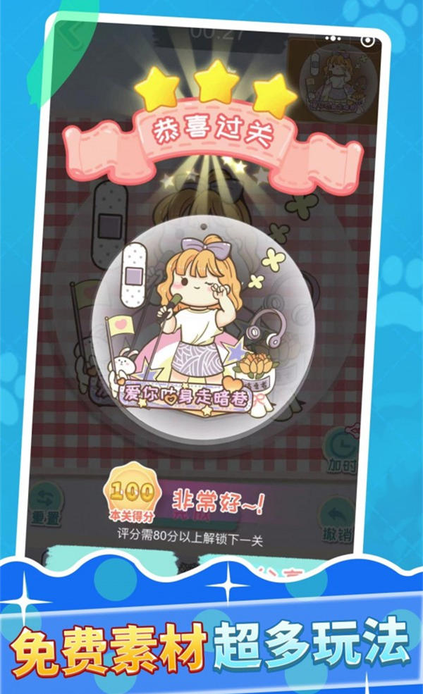 超級(jí)多的素材庫(kù),貼紙、膠帶、背景等等應(yīng)有盡有,各式各樣的精美服裝等你來(lái)更換,超級(jí)多的款式衣服隨便你用,各種角色都是非??蓯?ài),精美服裝多,各式各樣的裝扮隨你去用,只為給玩家?guī)?lái)更大的樂(lè)趣。