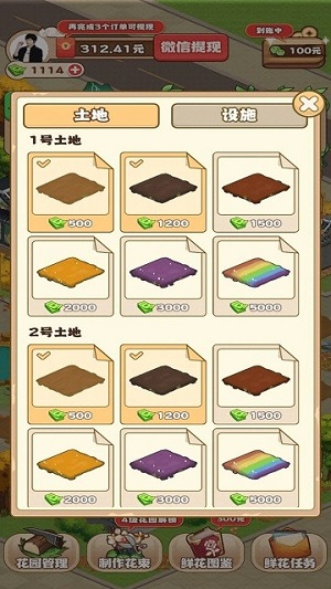 2、土地解鎖后可以種花賣錢,每朵花成熟后都會收集到倉庫里;