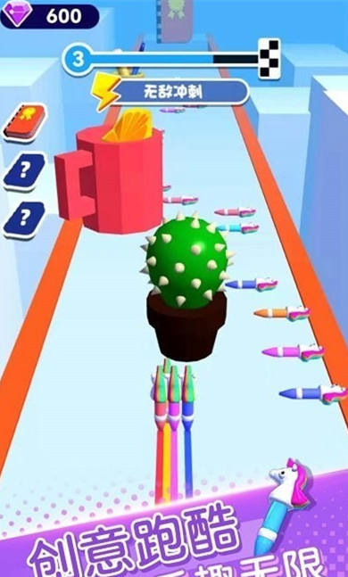 畫筆跑的快是一款讓玩家控制的五顏六色的水彩畫筆在遍地都是各種各樣的障礙物的賽道上進(jìn)行跑酷的游戲,在這款游戲中,玩家么可以決定畫筆的行動(dòng)路線和方向,躲開賽道上各種的障礙物的同時(shí)還需要不斷的收集更多的畫筆,收集更多獎(jiǎng)勵(lì)更多。