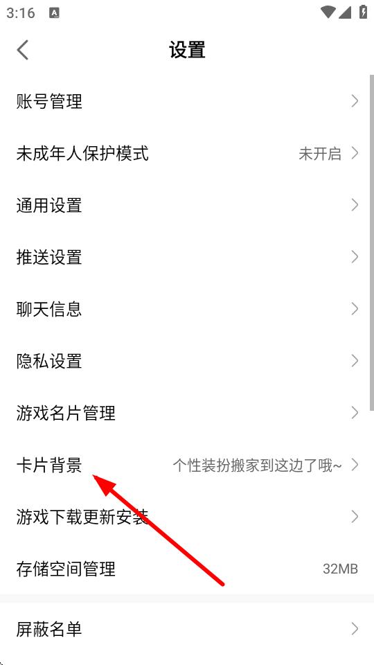 3、在設(shè)置界面中,找到并點擊卡片背景選項。