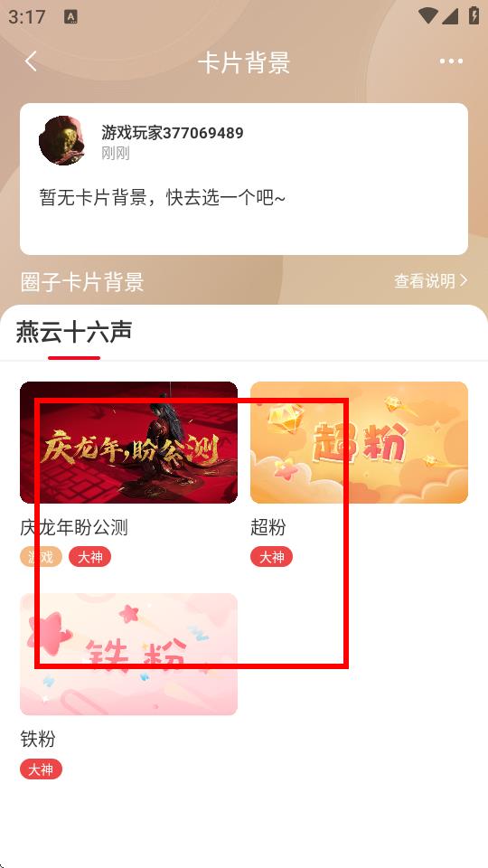 4、進(jìn)入卡片背景選擇頁面后,瀏覽展示的背景圖選項,點擊想要設(shè)置的背景圖,即可成功修改背景圖。