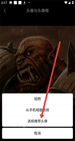 3、在頭像選擇菜單中點擊“選擇推薦頭像”,進(jìn)入選擇推薦頭像頁面。