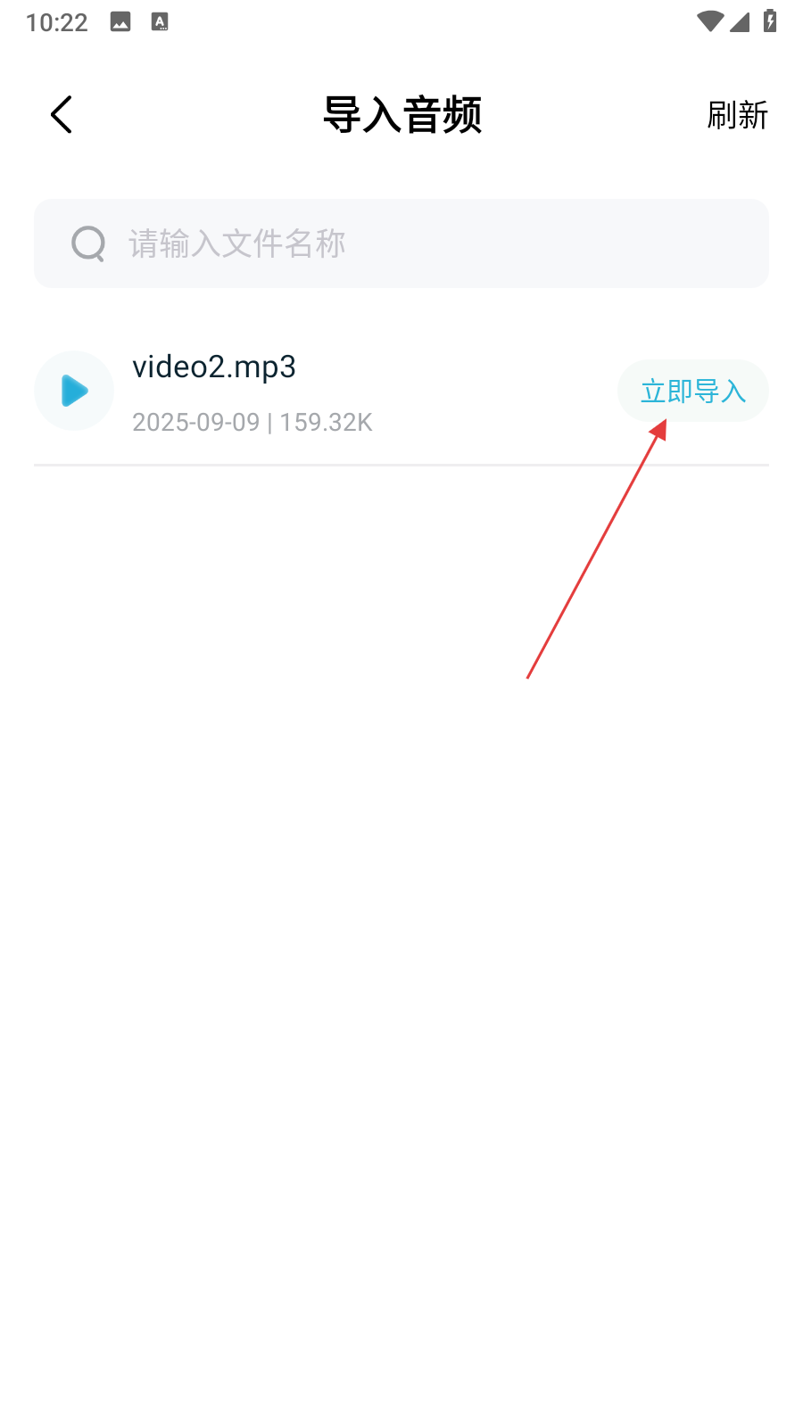 2、在導入音頻頁面,找到目標音頻文件,點擊其右側的立即導入按鈕。