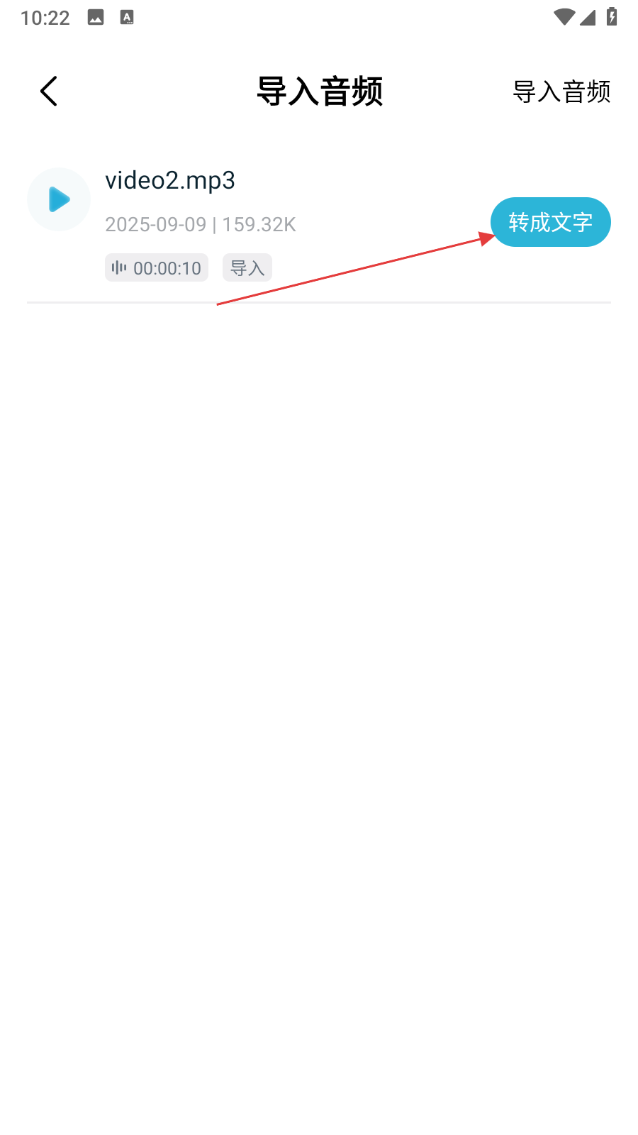 3、音頻導入后,點擊文件右側的轉成文字按鈕,啟動音頻轉文字的操作。