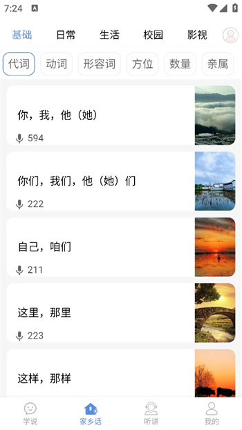 -通過選擇日常場景中常見的句子進(jìn)行發(fā)音,方便用戶學(xué)習(xí)方言,是學(xué)習(xí)方言的好幫手;