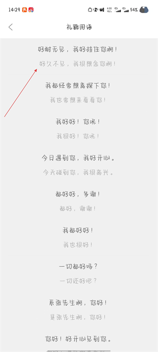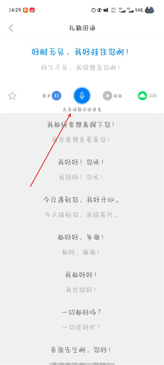 3、進(jìn)入練習(xí)語句界面之后,點(diǎn)擊要練習(xí)的口語內(nèi)容。
