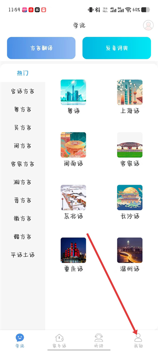 1、打開方言通APP,點(diǎn)擊右下角我的選項(xiàng),進(jìn)入個(gè)人中心頁面。