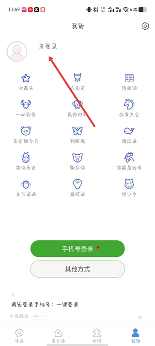2、在個(gè)人中心頁面點(diǎn)擊未登錄區(qū)域,進(jìn)入登錄方式選擇頁面。