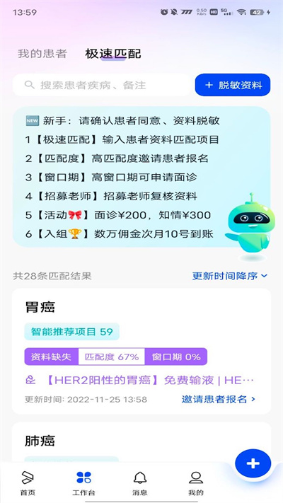 1、從中可以了解到更多的研究項目匹配,幫助病患可以及時的選擇治療;